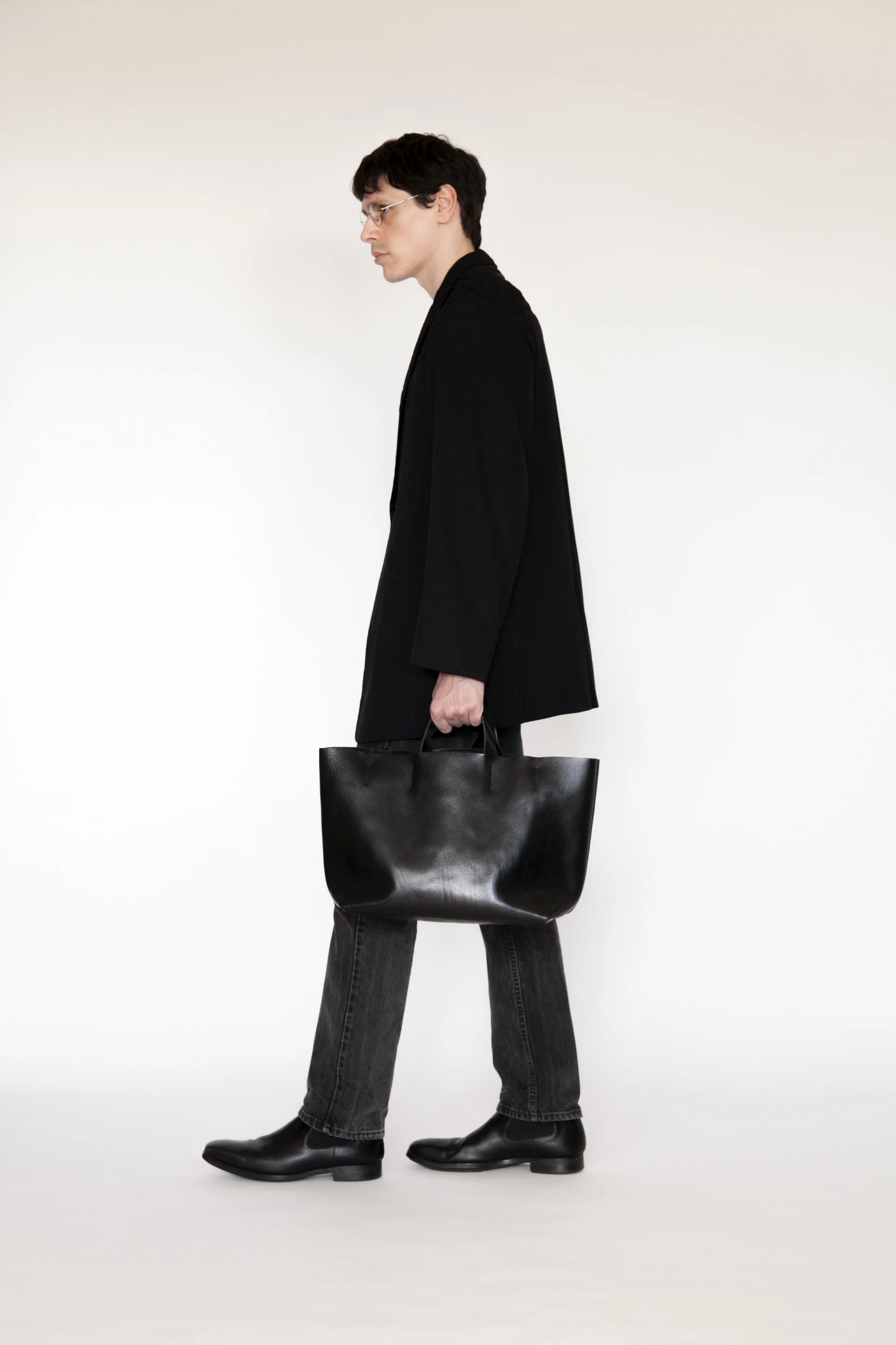 SHOP › TOTE IN BLACK RUGGED VEGETABLE TANNED LEATHER Image 1 of 1 TOTE IN BLACK RUGGED VEGETABLE TANNED LEATHER $2,400.00 SHIPS IN TWO WEEKS.TWO INTERIOR POCKETS.11”H 14” X 7.5” BASESADDLE STITCHED AND FINISHED BY HAND IN BROOKLYN NEW YORK. ADD TO SHOPPING BAG Added! SHIPS IN TWO WEEKS.TWO INTERIOR POCKETS.11”H 14” X 7.5” BASESADDLE STITCHED AND FINISHED BY HAND IN BROOKLYN NEW YORK.